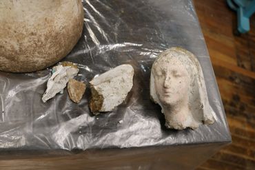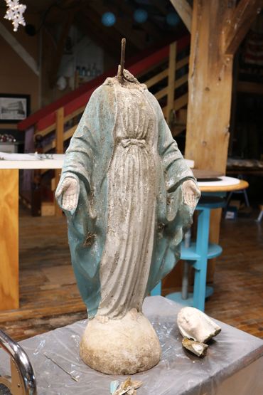 The painting is secured onto the new linen and awaits putty, paint and varnish.
