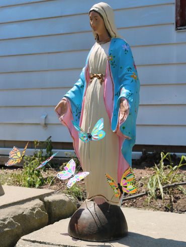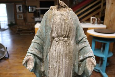 1949 decorative water-based paint on panel, trim panel and clean around paint so as to not disturb it.